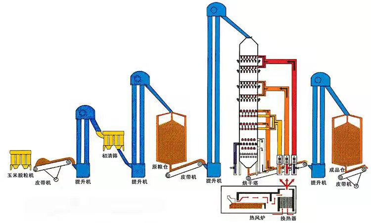連續(xù)式糧食干燥機(jī)是以煤、稻殼或秸桿作燃料,經(jīng)過(guò)燃燒和熱轉(zhuǎn)換為干凈熱空氣,烘干谷物。